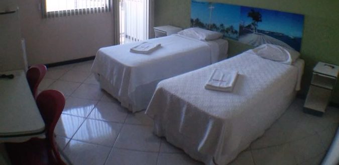 Este quarto duplo dispõe de varanda, vista e piso frio/em mármore.